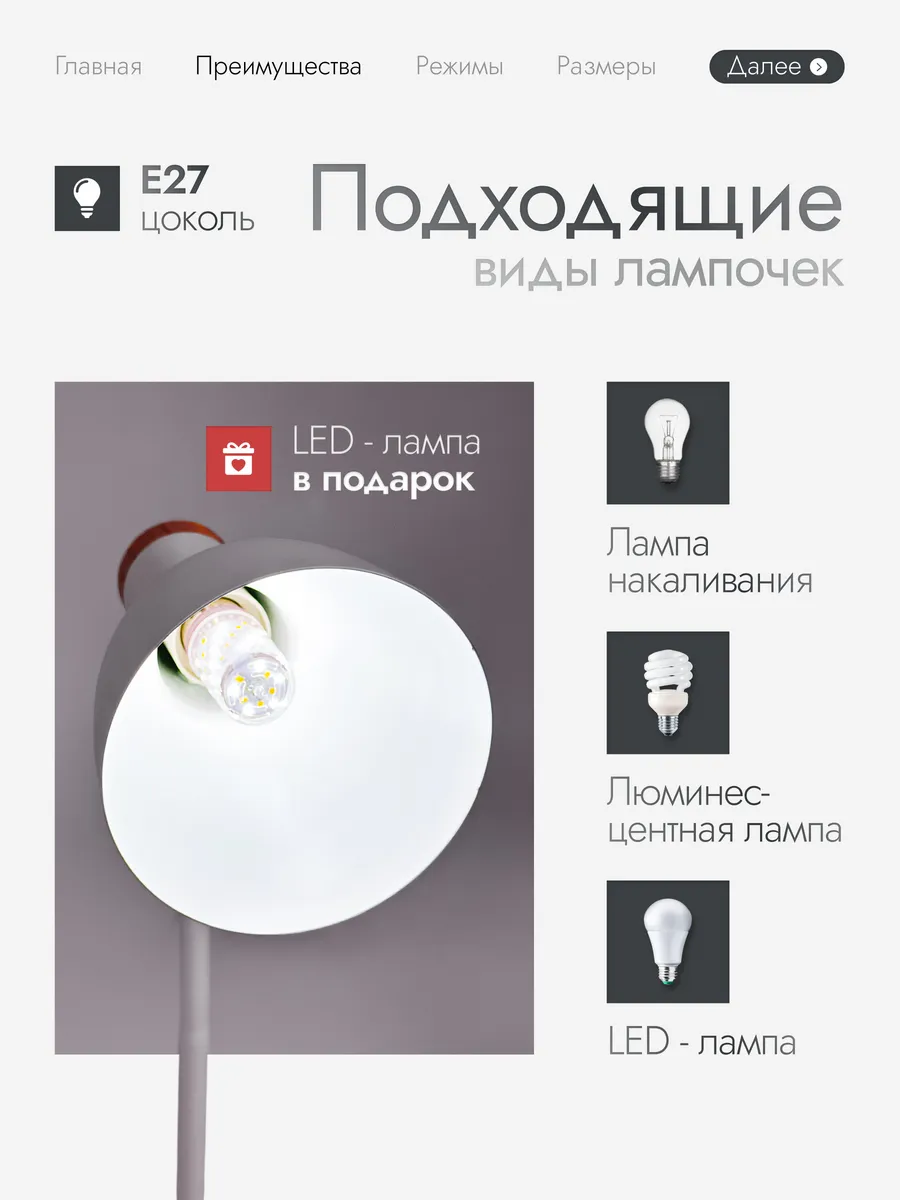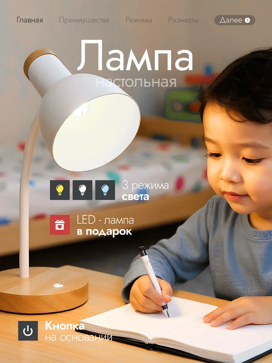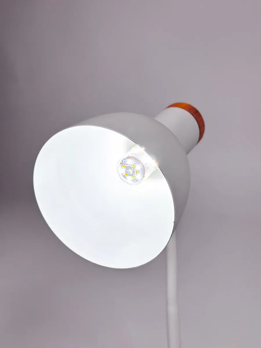 Декоративная настольная лампа в стиле лофт – идеальное решение для улучшения освещения внутри дома. Можно использовать как лампу настольную для школьника, также хорошо подойдет как офисная. Деревянное основание в сочетании с белыми металлическими деталями, создают эффект, характерный для продуктов Икеа. Цоколь лампы - Е27. Хорошо подойдет как лампа для чтения, так как имеет гибкую струбцину, позволит вам легко регулировать освещение в соответствии с вашими потребностями. Впишется в любой интерьер дома, будет отличным решением для украшения тумбочки в спальне или в других комнатах. Помимо того, что эта лампа хорошо подходит для учебы, работы и рисования. Она также станет стильным и практичным подарком для детей и ваших близких людей.