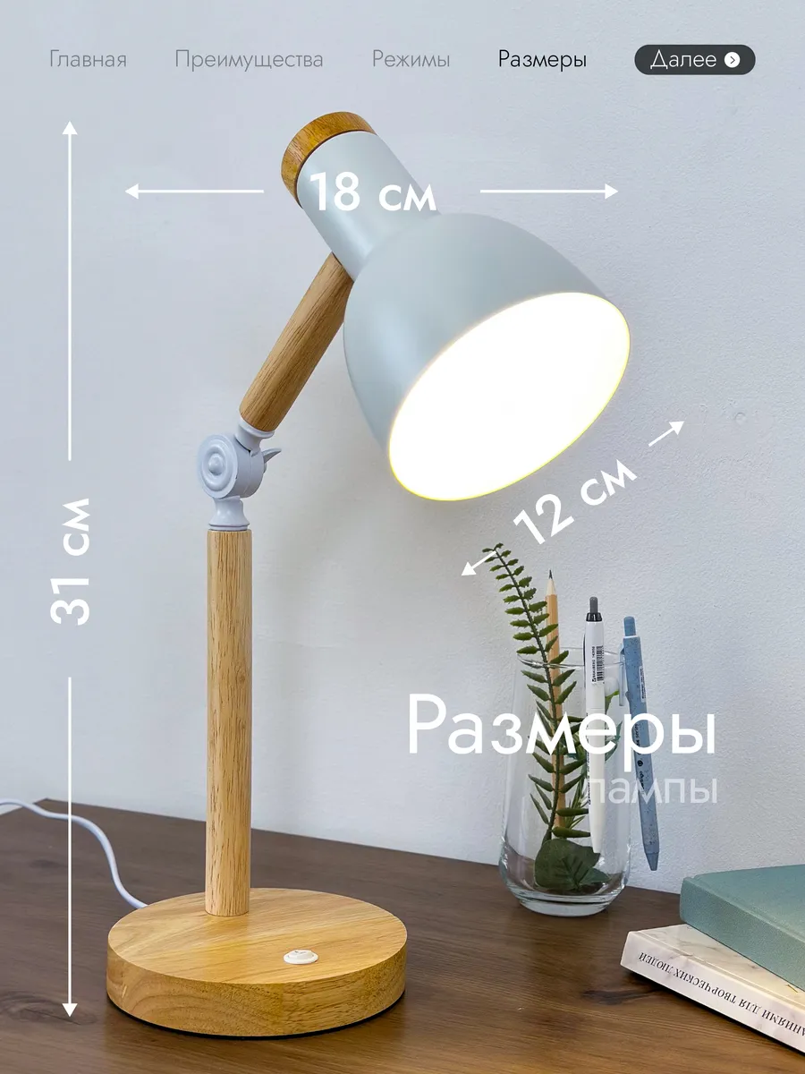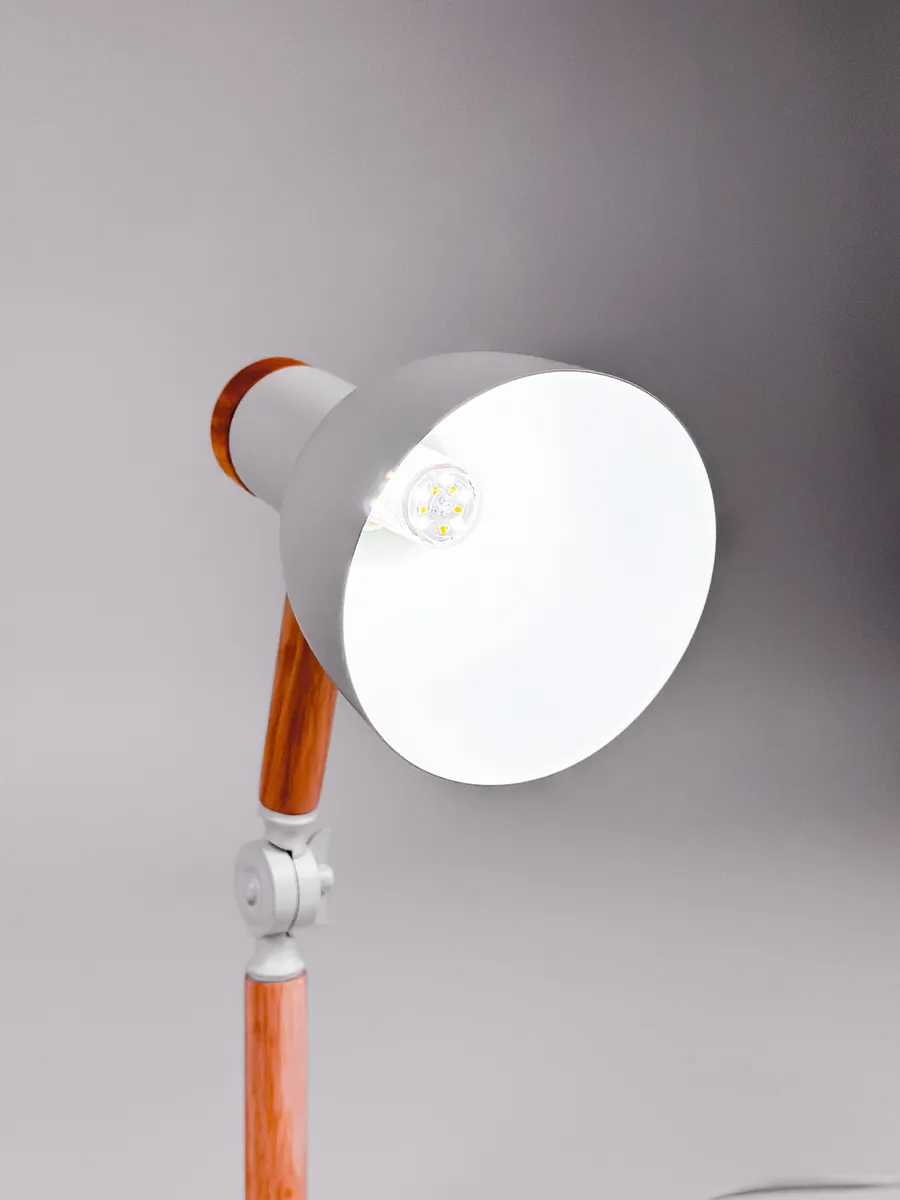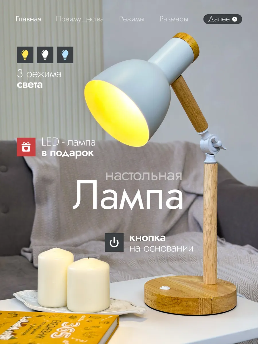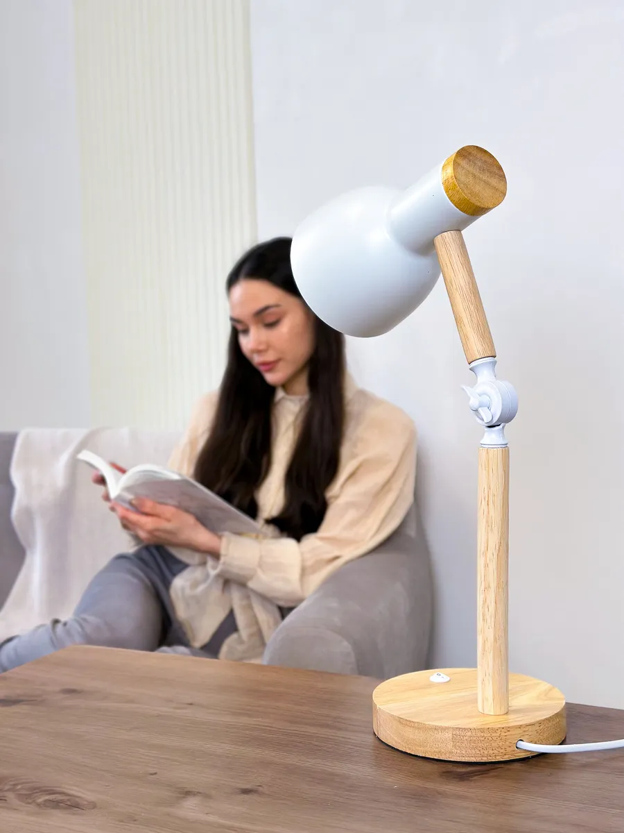 Декоративная настольная лампа в стиле лофт – идеальное решение для улучшения освещения внутри дома. Можно использовать как лампу настольную для школьника, также хорошо подойдет как офисная. Деревянное основание в сочетании с белыми металлическими деталями, создают эффект, характерный для продуктов Икеа. Цоколь лампы - Е27. Хорошо подойдет как лампа для чтения, так как имеет регулируемую струбцину, позволит вам легко регулировать освещение в соответствии с вашими потребностями, всего 3 режима освещения, в комлекте Led лампа. Светильник впишется в любой интерьер дома, будет отличным решением для украшения тумбочки в спальне или в других комнатах. Помимо того, что эта лампа хорошо подходит для учебы, работы и рисования. Она также станет стильным и практичным подарком для детей и ваших близких людей.