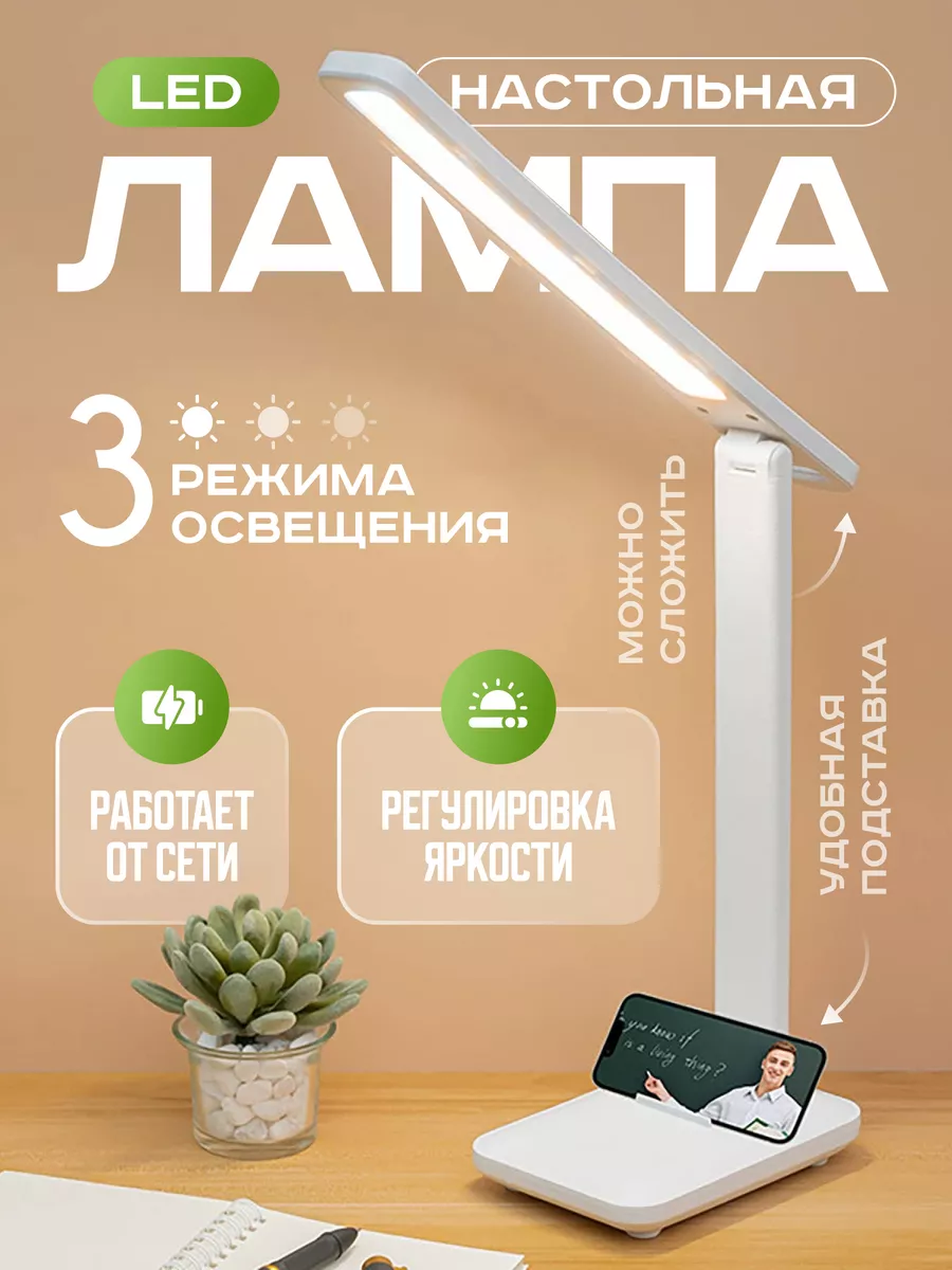 Удобная подставка под телефон экономит место рабочего пространства, а светодиоды экономят до 80% электроэнергии.