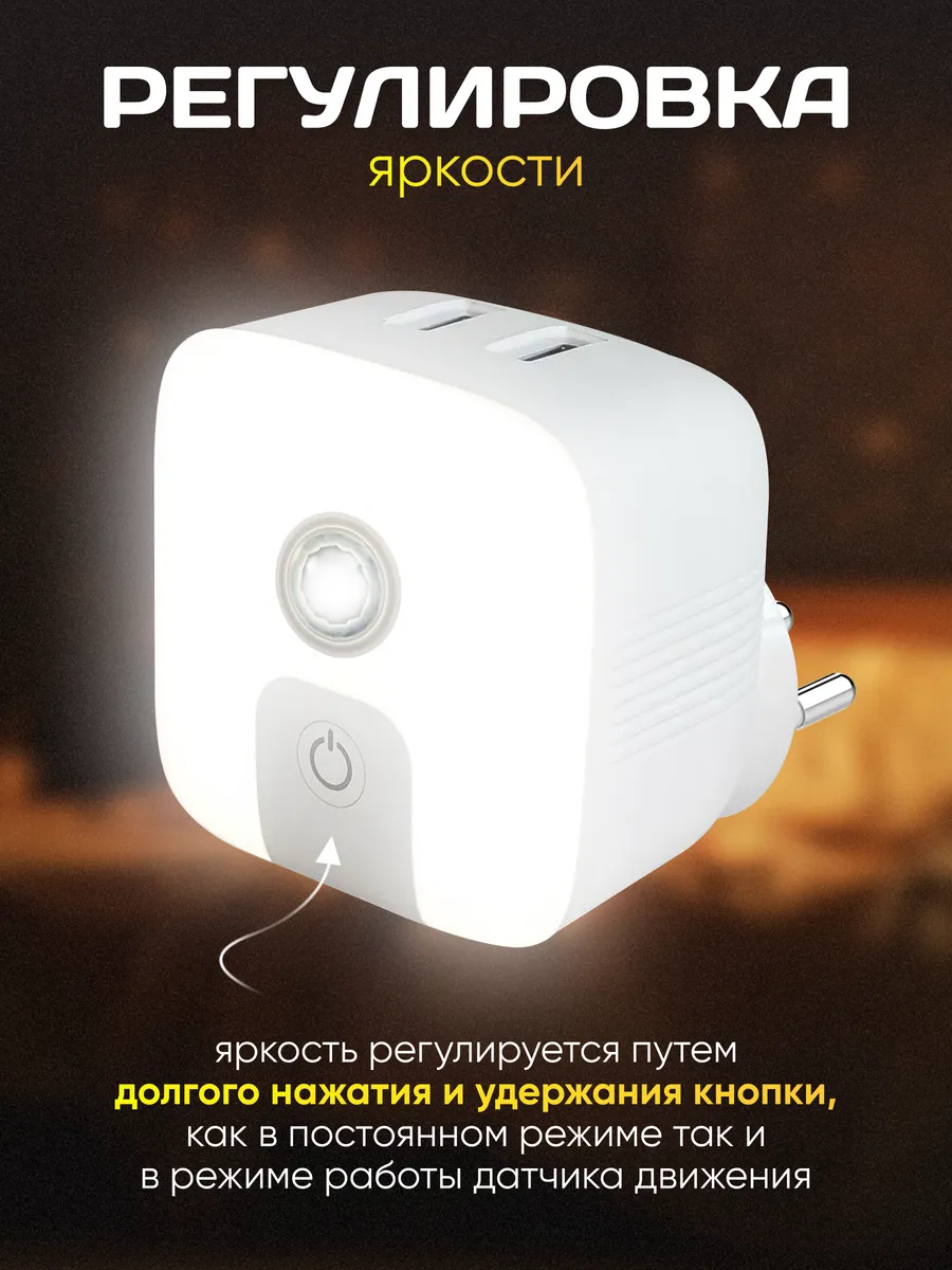 Светильник с датчиком движения, с холодно белым светом сделает каждую вашу ночь особенной! Наш ночник в розетку с выключателем оснащен датчиком движения, что позволяет ему автоматически включаться при появлении вашего новорожденного или ребенка в спальне. Настенный ночник легко подключается к розетке. Регулировка яркости позволяет выбрать оптимальное освещение для любого времени суток, регулировка яркости производится путем нажатия и удержания сенсорной кнопки включения. Ночник имеет 3 режима работы, имея мягкий свет, светящийся в темноте. Дополнительно, наш ночник оснащен USB портами для зарядки телефона и гаджетов. . Прикроватный ночник – идеальное решение для детской комнаты или спальни. Он поможет вашему малышу чувствовать себя защищенным и комфортным во время сна. Маленький, компактный и стильный – он легко впишется в любой интерьер вашего дома. Не ждите следующего дня, чтобы порадовать своего ребенка! Закажите наш ночник прямо сейчас и подарите ему свет и радость каждый день! Хороший подарок на новый год, на день рождения, маме, сюрприз для малышей и детей, подростку, любимой подруге или мужчине, также хорошо подойдет как ночник для новорожденных.